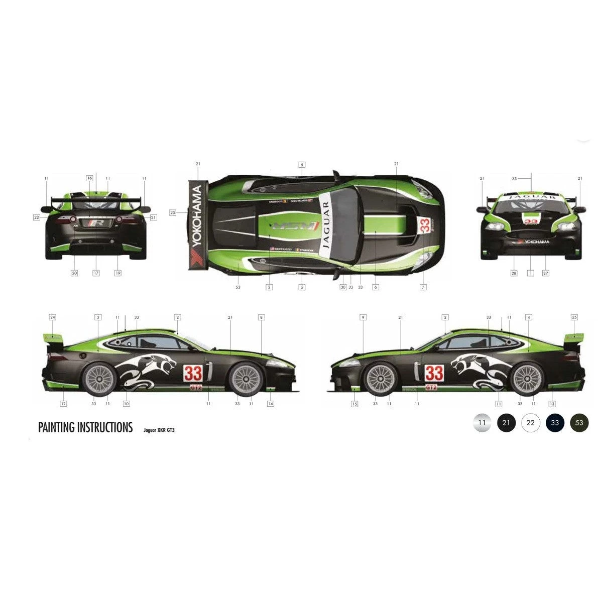 The Jaguar XKR GT3 is the racing version of the road going Jaguar XKR. Using the same engine but with much more advanced aerodynamic aids, such as the large rear wing, prominent front splitter and with much improved brakes, the racing version is able to corner at speeds far higher than its road going counterpart. Developed for the FIA GT3 series and then raced in other GT series around the world (including a campaign in American GT2 as represented in this kit), the Jaguar proved to be a competitive machine.