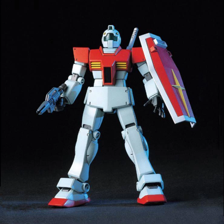 Based on the Mobile Suit Gundam anime series, this RGM-79 GM model kit is in 1/144 scale and becomes a fully articulated figure once built.