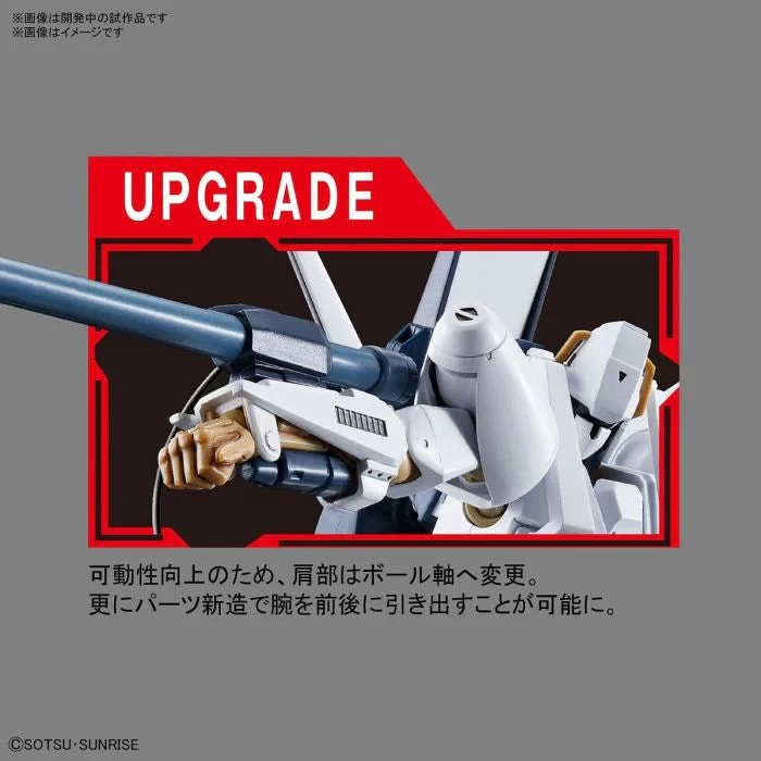 The upgraded L-Gaim from “Heavy Metal L-Gaim” joins the HG model kit series from Bandai! The new design features an adjusted balance for the head, and the thigh parts have also been changed for a more stylish look. The shoulder joint has been changed to a ball shaft joint for improved mobility; you can pull the arm outward and move it back and forth with ease. The Buster Launcher has been newly moulded, and new joints that can be attached to Action Base 5 (sold separately) are also included.