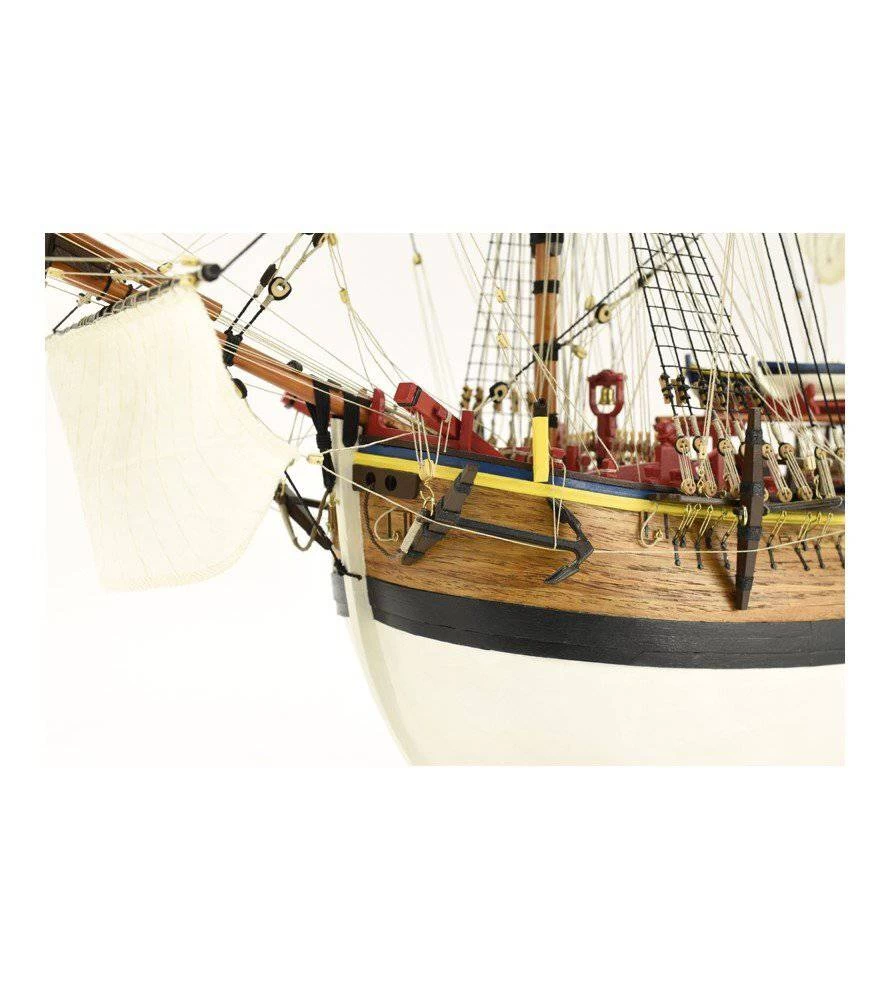 Build the renewed wooden ship model kit of Endeavour at 1/65 scale, an emblematic British boat of the 18th century maritime exploration. Its construction system using false keel and frames brings the assembly of your model closer to the construction of the real ship.
