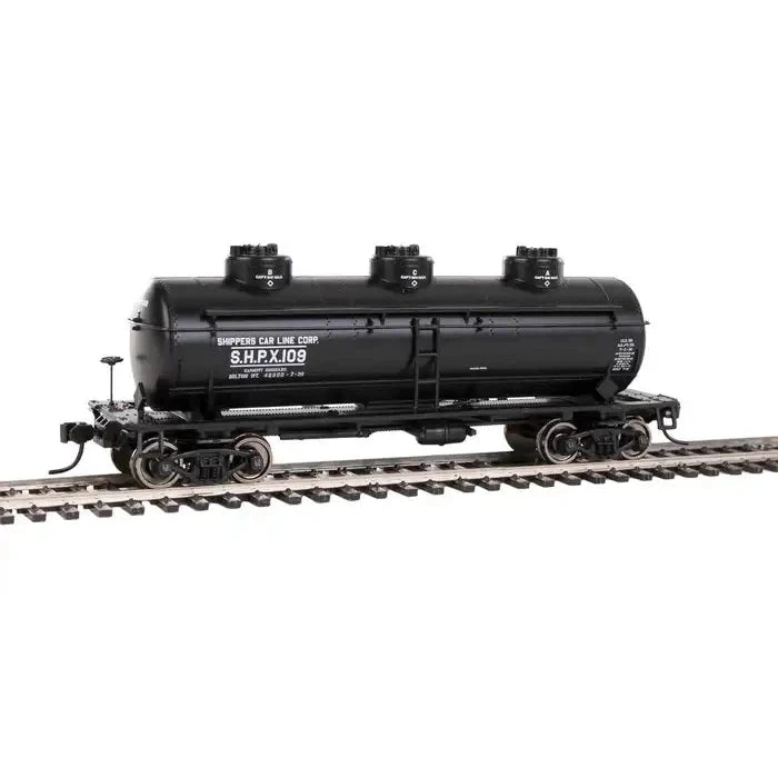 Add authentic cars to your steam- or diesel-era layout with these 36′ 3-Dome Tank Cars from WalthersMainline! Serving a wide range of both producing and consuming industries, these cars were actually three tanks in one, ideal for handling smaller amounts, and a greater variety of product at once.