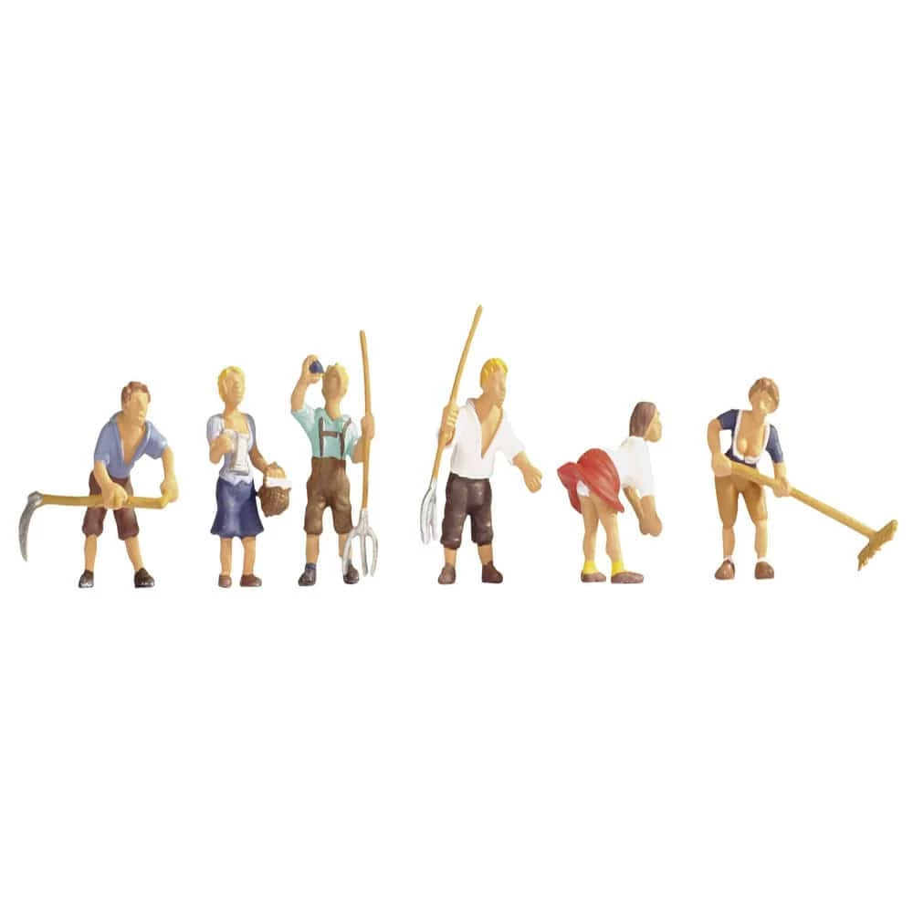 The “Mountain Farmers” figure set contains figures resembling rural farmers in various poses with their tools. Figures for every possible Scene! There is nothing that brings more life to your model landscape than realistic figurines. You will find an extensive figure collection, with figures in every possible pose, in the NOCH product range. Decorate your model railway layout with beautiful figures, such as warehousemen, carpenters, chimney sweepers and postmen, but also paramedics or policemen, who keep your model landscape in check. The assortment of figures leaves nothing to be desired and makes your landscape design a lot easier. Perfect for modelers who want to create realistic scenery and layouts be it for a model railway, architecture or any other scale model project layout.