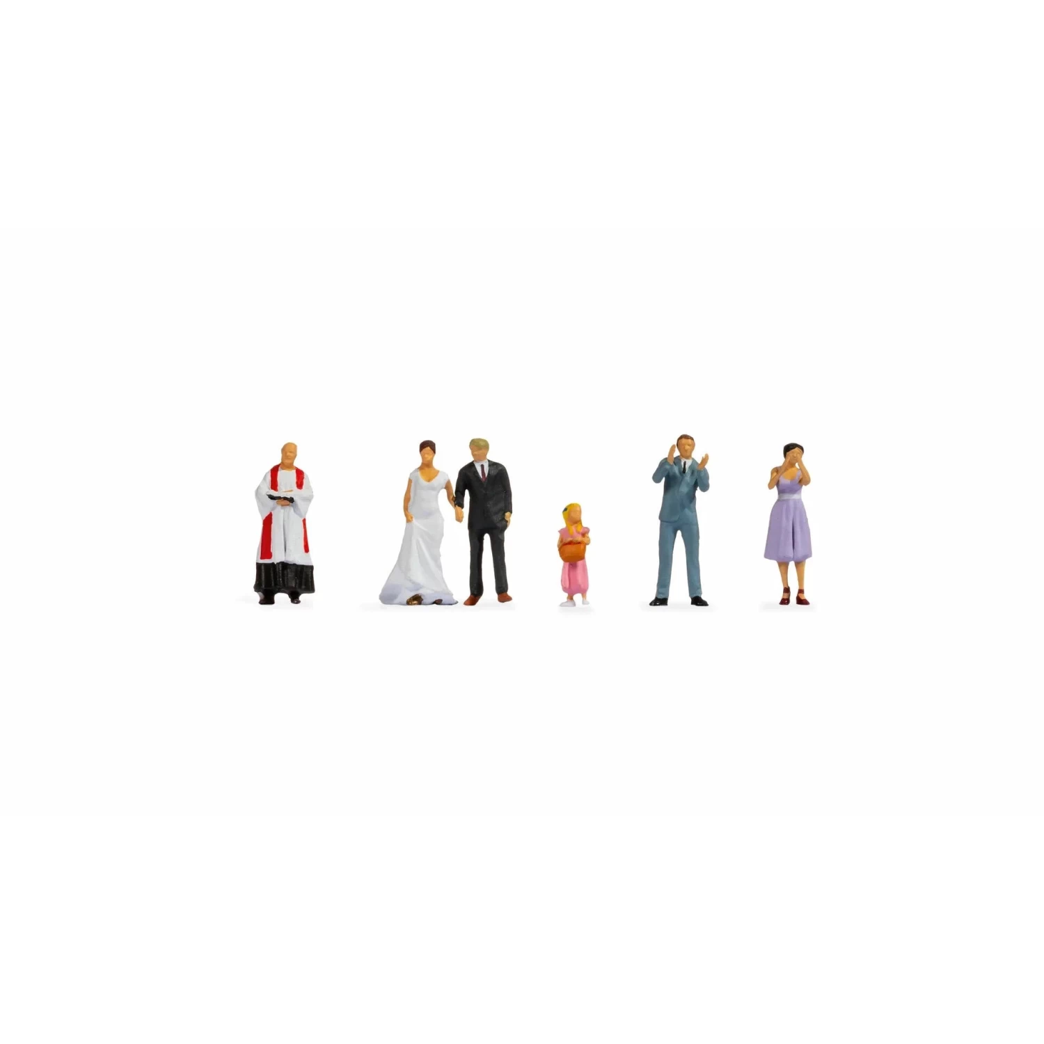 The NOCH Figures Set “Bride and Groom” is ideal for perfectly recreating a realistic wedding. A wedding is one of the loveliest shared experiences for many couples and an unforgettable day for all participants. Many guests – whether relatives, friends, acquaintances or colleagues – celebrate this great day together with the bridal couple. Eating, drinking, music and a great schedule make people happy together. The “Bride and Groom” can get married at a registry office and at a church. After the rings have been exchanged, the couple is married, and they can call themselves husband and wife! The flower girls drop a shower of beautiful flowers over the bridal couple as they exit the church. The wedding photographer captures the unforgettable moment in a lot of shots. What an unforgettable day for everyone involved!